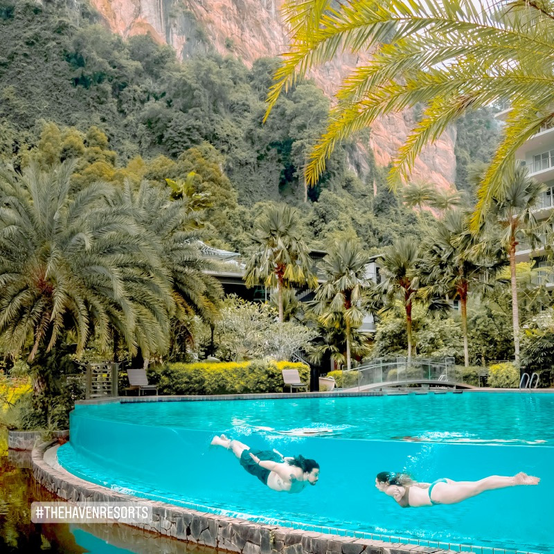 The Haven All Suite Resort 豪华度假酒店被石灰岩,森林和湖泊环绕着,除了山明水秀的山景之外,这里最大的特色就是他们的360度无敌山景透明泳池了!